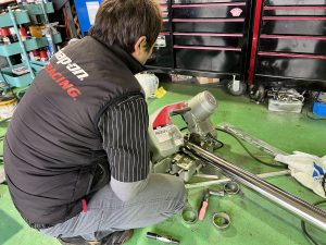 ノーマルの1本ものマフラーから加工しての取付となりました。